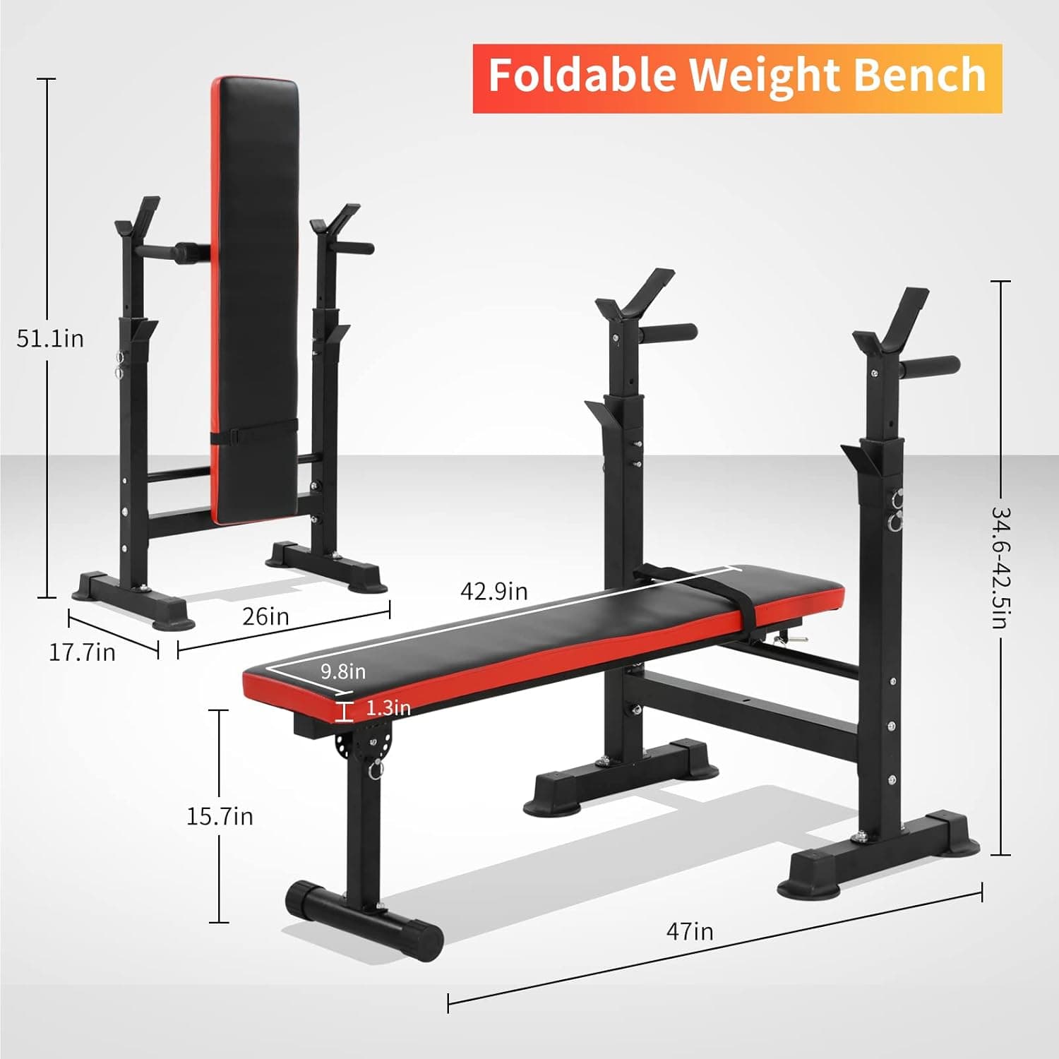Weight Bench with Adjustable Barbell Height, Heavy Duty Lift Bench with Dip Station Workout Bench for Home Gym