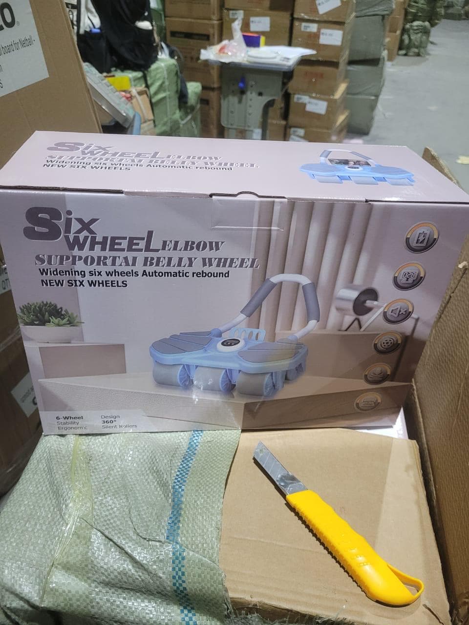 6 Wheel Automatic Rebound Ab Roller Wheel with Elbow Support, Timer, and Six-Wheel Design