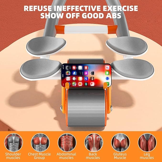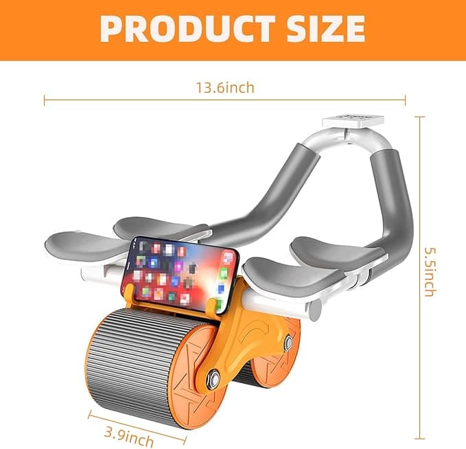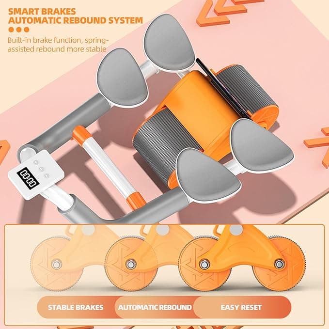 Automatic Rebound Abdominal Wheel with 4 Elbow Support, Timer, Knee Pad